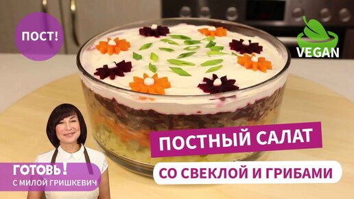 Постный слоеный салат со свеклой и грибами Грибы под шубой