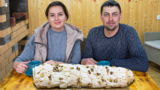 Большой Рулет с Горячим Чаем! Простой рецепт. Меренговый
