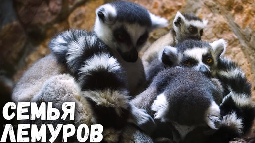 Малыши кошачьих лемуров крепко ухватились за мам. Ленинградских зоопарк