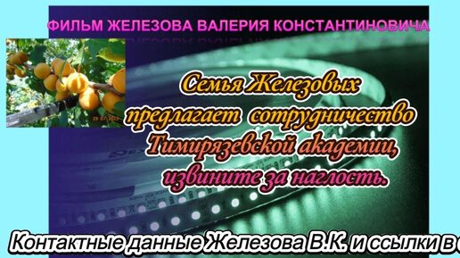 Семья Железовых предлагает сотрудничество Тимирязевской академии, извините за наглость.