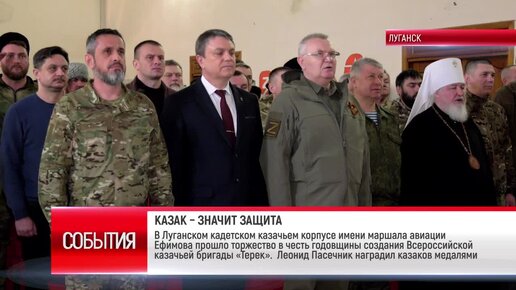 ТК "Родной". В Луганском кадетском казачьем корпусе прошло торжество в честь годовщины создания Всероссийской казачьей бригады «Терек»