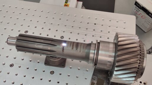 Маркировка валов без поворотного устройства с перепадом по высоте изделия на лазере G-MARK 100 фокусирующая линза Wave OPTICS 220x220 мм