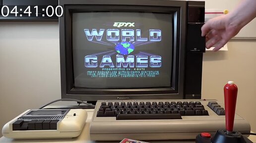 Раритет: Загрузка игры World Games "KIXX" с кассеты и процесс игры на C64