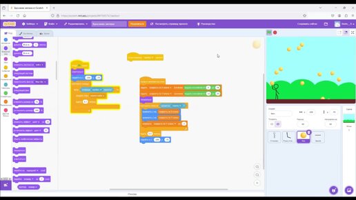 Полёт мячика в Scratch. Движение брошенного объекта.