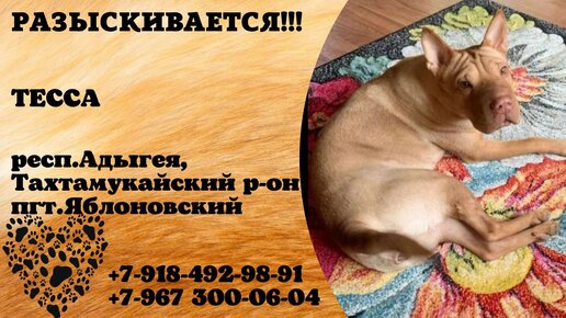 Пропала собака! ТЕССА. Респ.Адыгея, Тахтамукайский р-он, пгт.Яблоновский.