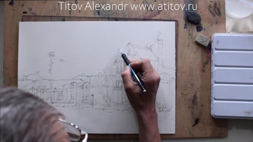 Уроки рисования 7. Рисуем дом из Таганрога часть 2. Как нарисовать строения и построить перспективу в пейзаже