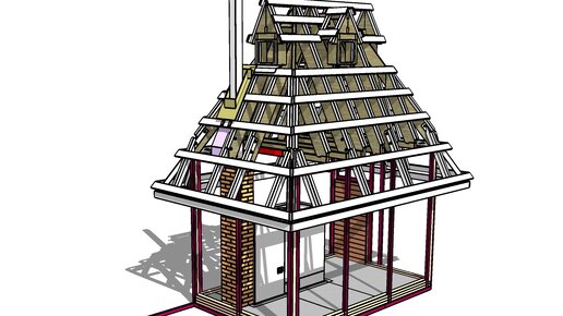 3D проект домика с печью в SketchUp (Скетчап)