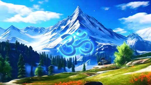 Медитативная успокаивающая мелодия. Знак Ом на фоне пейзажей у подножия Гималаев.