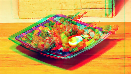 3D stereo red-cyan Заливное яйца дракона с перепелиным яйцом