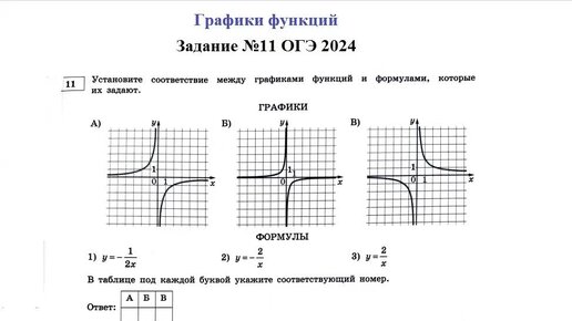 Установить соответствие между графиками. Гипербола. Задание №11 ОГЭ 2024