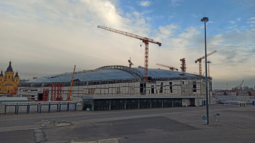 Ход строительства ледового дворца на Стрелке: идёт демонтаж башенных кранов || Апрель 2024