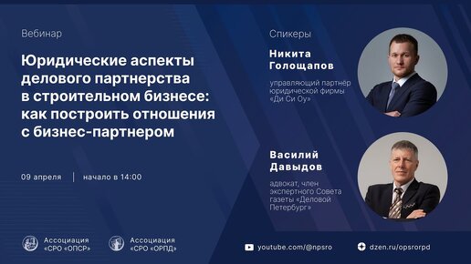 Вебинар для членов СРО: Юридические аспекты партнерства в строительном бизнесе