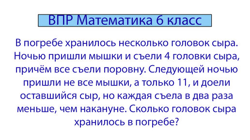 В погребе хранилось несколько головок сыра. Логическая задача повышенной сложности. Номер 13 из ВПР по математике для 6 класса