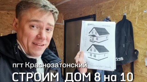 Начало строительства жилого дома из бруса. План дома 8 на 10 полтора этажа. Технология строительства