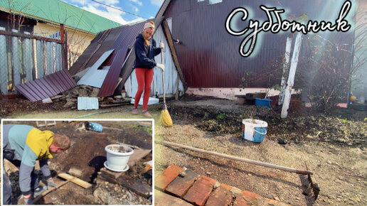 Субботник во дворе. Ломаем фундамент. Постелила искуственный газон. Выравниваем участок