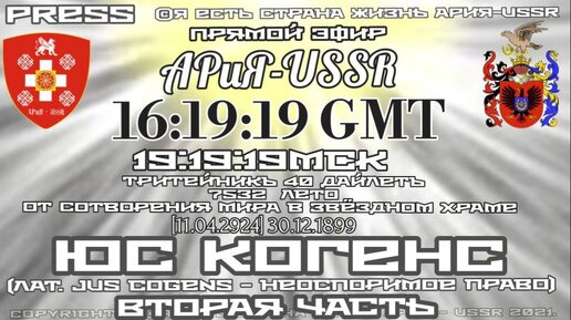 ЭФИР АРиЯ-USSR🎥 Тритейник40 Дайлетъ7532лето от С.М.З.Х.[11.04.2024]30.12.1899🔒ЮС КОГЕНС Вторая часть