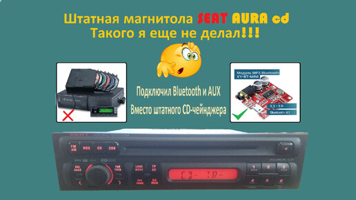 Магнитола SEAT AURA cd активируем функцию CD-чейнджера и подключаем в место него Bluetooth и AUX