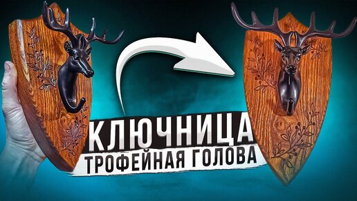 Ключница с гравировкой - трофейная голова оленя на медальоне. Deer head trophy for keys DIY CNC wood