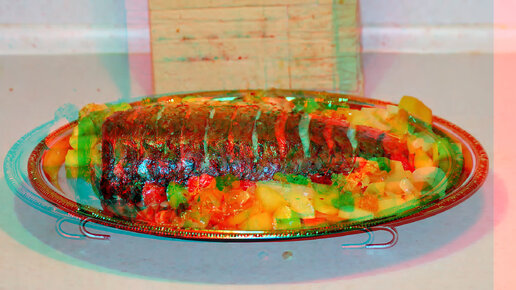 3D stereo red-cyan Cазан с овощами и лимоном в духовке
