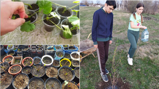 Будни в деревне. Работаем на участке все вместе. Пересаживаем смородину🌱