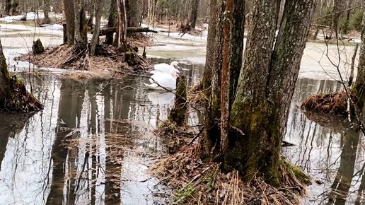 ЛЕБЕДИ И ГУСИ НА БОЛОТЕ В ПОДМОСКОВНОМ САФАРИ-ПАРКЕ