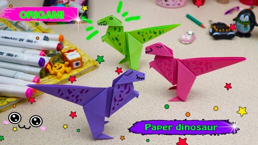 Динозавр оригами! Как сделать динозавра из бумаги. Простые поделки из бумаги оригами.