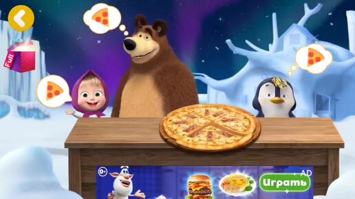 Мультфильм Игра для малышей Маша и Медведь 🧸🐧 Пицца для пингвина 🍕 🍕🍕 гавайская