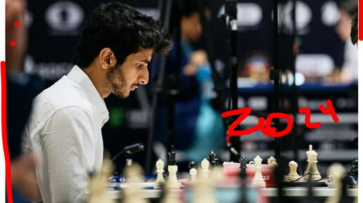 Индийский супер-гроссмейстер Видит Сантош Гужрати жертвует качество ходом 37.♖xd5 и весело переигрывает Алирезу Фируджу в Торонто, 2024, 1-0