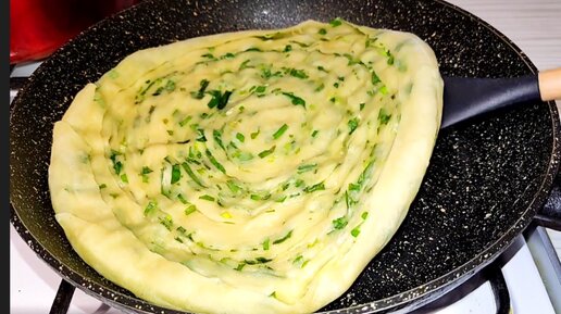 Лепёшки на сковороде из муки, воды и зелёного лука. Просто, вкусно, доступно