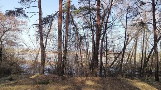 Ранняя весна. Прогулка по тропиекам в сосновом лесу возле пруда с чайками.