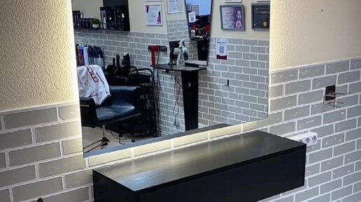 Монтаж зеркал с подсветкой и подвесной тумбы барбера