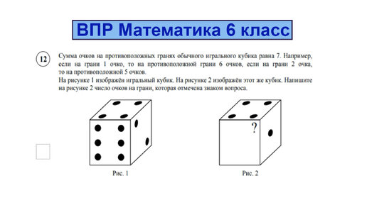 Сумма очков на противоположных гранях обычного игрального кубика равна 7. ВПР Математика 6 класс. Задание 12 Кубик