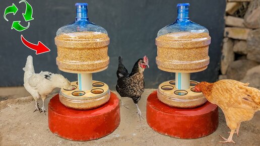 Необыкновенная кормушка для кур | Изготовление кормушки для кур на 10 кг из бутыли.