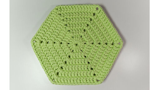 Вязаная шестиугольная салфетка крючком столбиками с накидом.