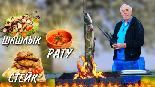 БЛЮДО на КОСТРЕ из РЕЧНОЙ РЫБЫ - СТЕЙК, РАГУ, ШАШЛЫК, ОТДЫХАЕМ ВКУСНО