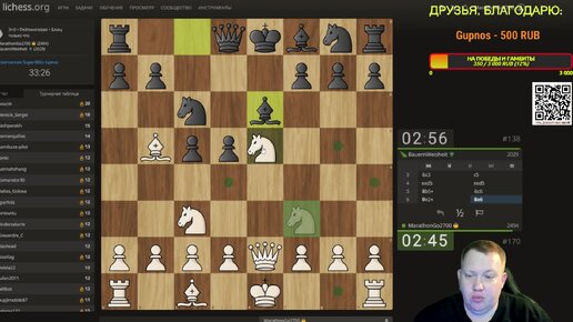 Атака 2-х коней против Французской защиты. Соперник удивляет в дебюте. Шахматы