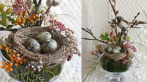 Взяла фольгу от шоколадки, нарвала сухой травы и сделала весенний декор к пасхальным праздникам