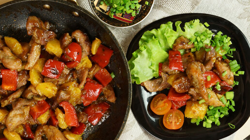 Мясо в кисло-сладком соусе с апельсином на сковороде