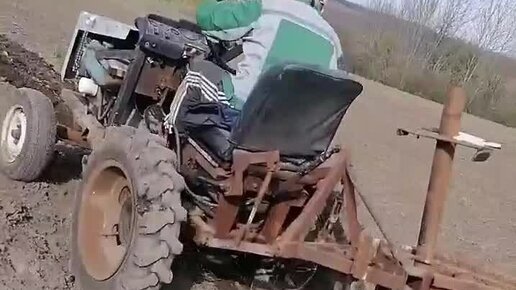 Весенняя вспашка самодельным минитрактором