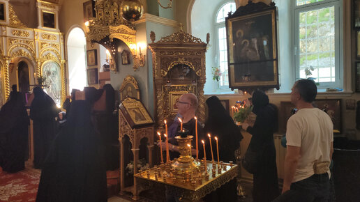 Все целуем икону Благовещение. Уникальное убранство Казанского собора Горненского монастыря
