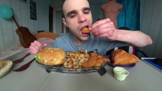МУКБАНГ БУРГЕР / ( WOK ) УДОН С ОВОЩАМИ / КРЕВЕТКИ В КЛЯРЕ / СОУС ТАР ТАР / ОБЖОР / EATING Mukbang ASMR АСМР