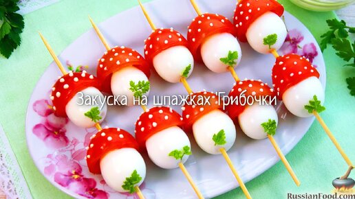 Грибная поляна на тарелке. Закуска на шпажках "Грибочки"