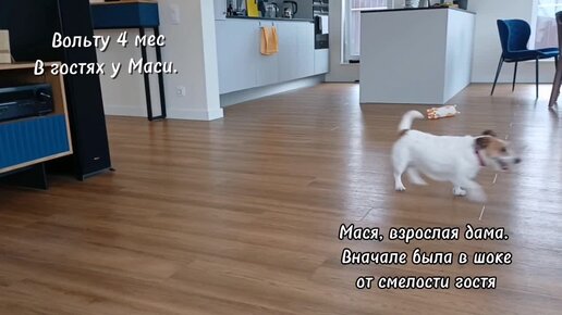#Русскийспаниель. Вольту 4 мес., он впервые в гостях у Маси. Мася в шоке, от смелости гостя. 🤣