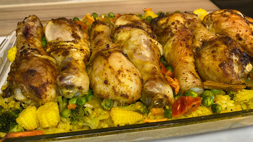 Не опять, а сново) Быстрый ужин в духовке. Куриные ножки с рисом и овощами.
