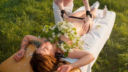 ВЕСЕННИЙ МАССАЖ ЖИВОТА И НОГ НА БЕРЕГУ ЖИВОПИСНОЙ РЕКИ ДЛЯ ОЧАРОВАТЕЛЬНОЙ ЭВЕЛИНЫ