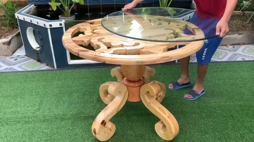 Чайный столик с рисунком в стиле арт. Резьба по дереву - элегантное мастерство.