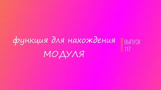 Выпуск 117. Функция для нахождения МОДУЛЯ