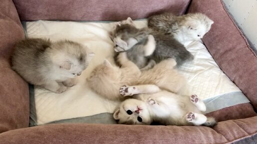 Котятам кошки Кайли 21 день. У котят прорезались зубки, которыми они друг друга активно кусают.