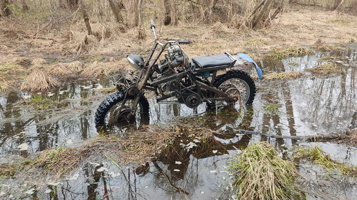 Полноприводный мотоцикл с двигателем от бензопилы урал на болоте