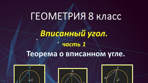 Геометрия 8. Вписанный угол. Часть 1. Теорема о вписанном угле.